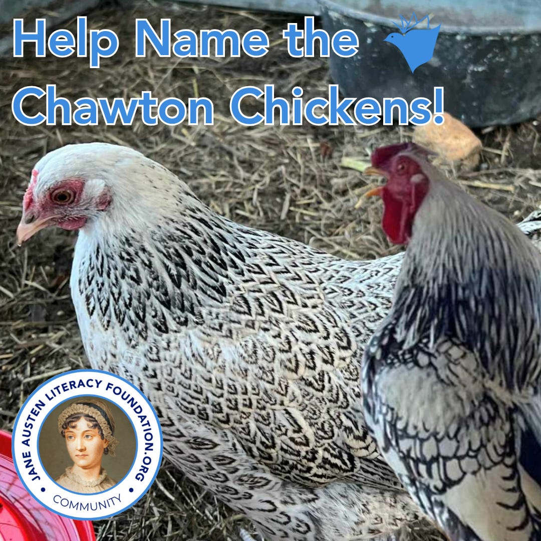 #2 - Our community over at the Jane Austen Literacy Foundation. This week we are helping to name the chickens that Jane Austen’s sixth-great niece will be raising on the property of Chawton House. (Chawton House was owned by Jane Austen’s brother, Edward Knight.)