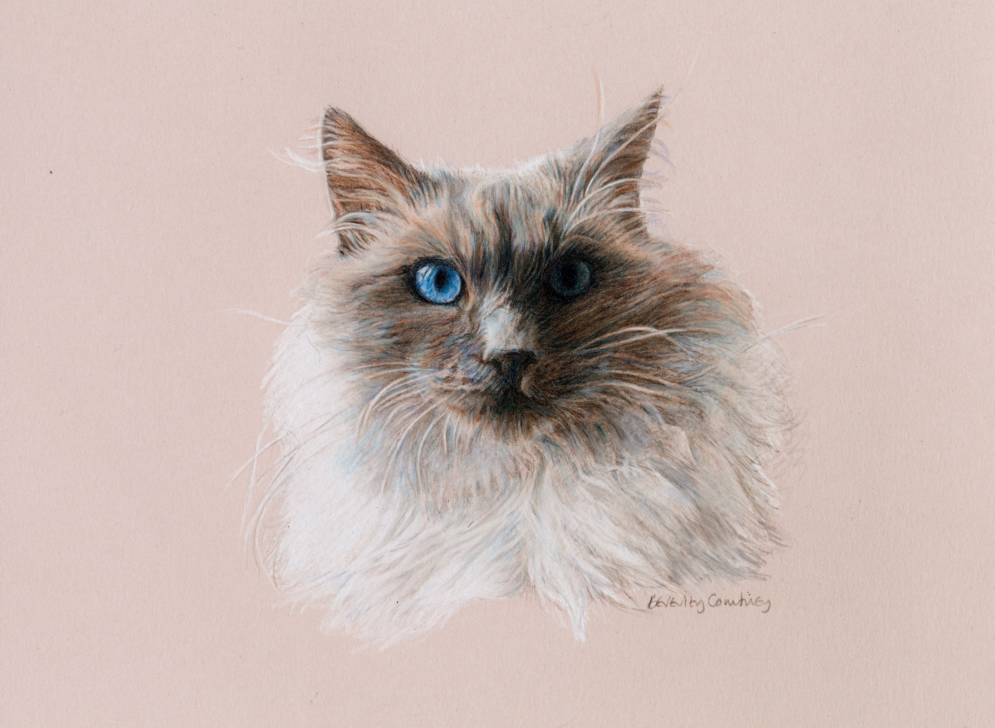 I mentioned that art figures large in my life, so I will sign off with one of my own drawings. Here is a Ragdoll Cat for you, in coloured pencil.
